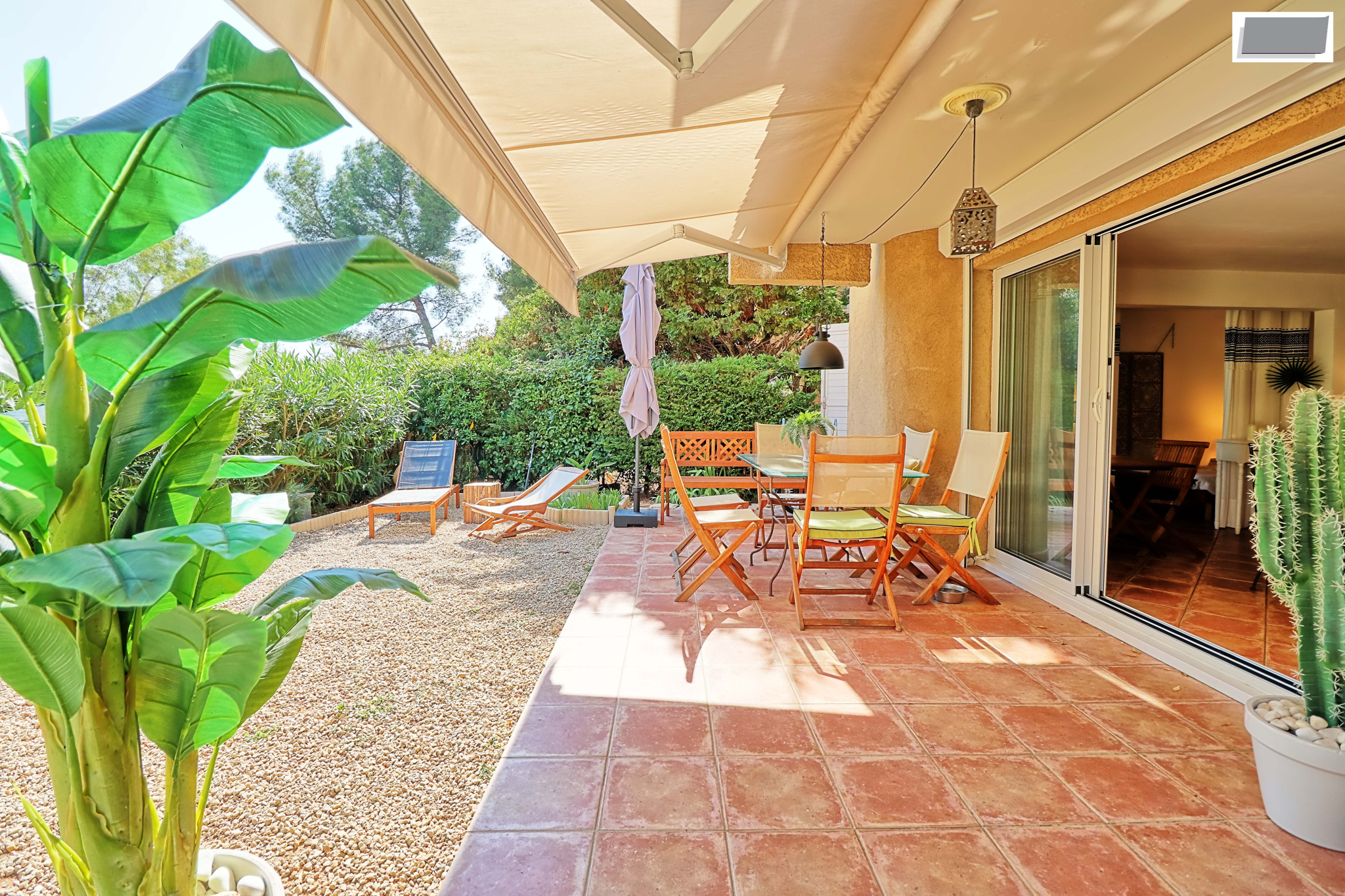 Au sein d'une copropriété récente de 2010, fermée et sécurisée, agrémentée d'une piscine et de beaux espaces verts plantés d'oliviers...