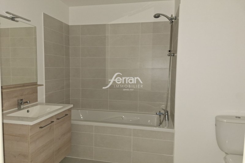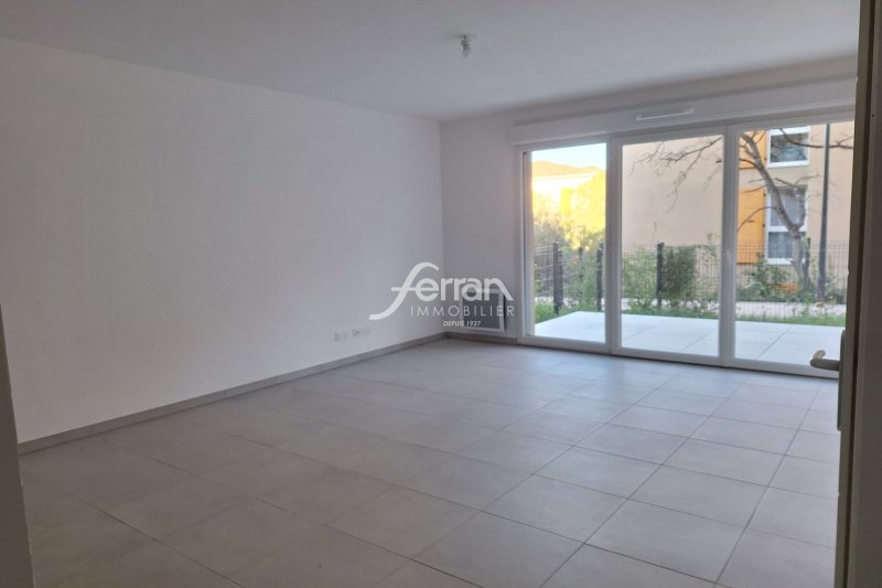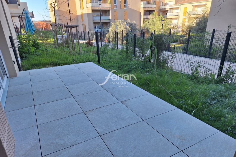 Dans résidence neuve, Type 2 de 44.50m² en rez-de-jardin se composant d'une entrée avec placard, séjour ouvrant sur terrasse (11 m²) et jardinet (18m²), chambre, salle de bains avec WC. Parking en sous-sol.