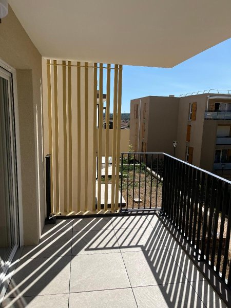 LOGEMENT NEUF - negadis - DRAGUIGNAN-LES ALLEES DE JADE : Appartement de type TROIS d'une superficie de 58.87m², au 1 er étage avec ascenseur- loué avec une place de parking privative. Composé d'une entrée avec placard , cuisine équipée et aménagée ouverte sur séjour , wc séparé , salle de bains , 2 chambres dont une avec placard , terrasse de 7.13m² , chauffe -eau thermodynamique , panneaux rayonnants. Location sous LOI PINEL.