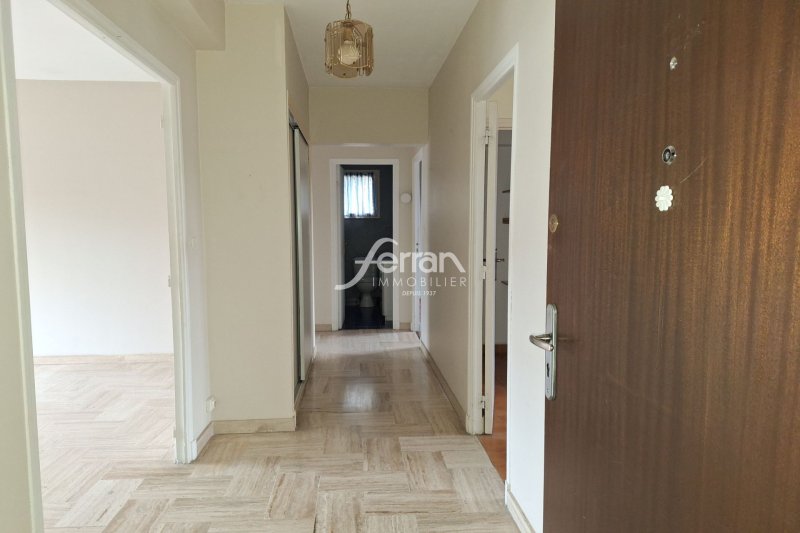 Dans petit immeuble proche du centre-ville, Type 3 de 77 m² au 1er étage sans ascenseur. Il se compose d'une entrée, séjour avec climatisation, balcon filant, cuisine indépendante aménagée avec cellier attenant, balcon, d'un dégagement avec placard desservant 2 chambres dont une avec placard, salle de bains et WC. 1 place de parking et une cave.