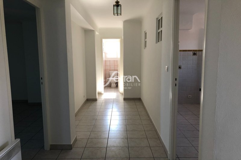 A proximité de toutes les commodités, Type 3 de 80 m² au 2ème étage sans ascenseur se composant d'une entrée avec placard, cellier, dégagement avec placards, séjour (climatisé) ouvrant sur balcon, cuisine aménagée, 2 chambres dont 1 avec placard, salle d'eau et WC. Parking et Garage