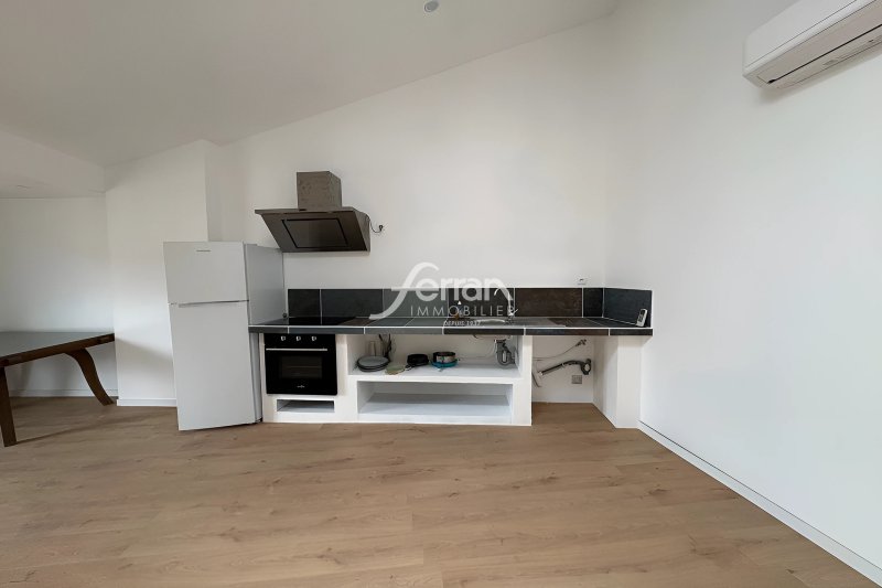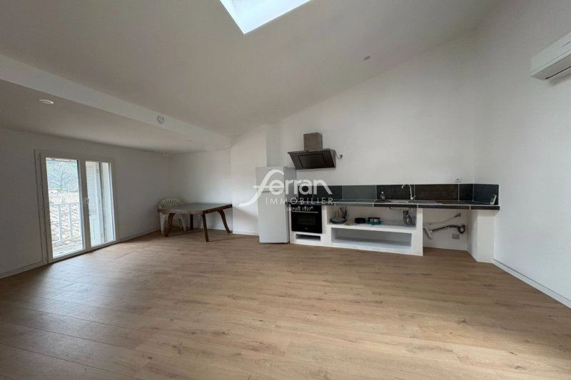 Entrecasteaux, jolie vue sur le château d'Entrecasteaux depuis le séjour de ce très bel appartement rénové avec terrasse. T3/4 meublé de 80m² environ comprenant une entrée, au niveau supérieur une pièce de vie avec cuisine aménagée et équipée (plaque, hotte, four, réfrigérateur/congélateur), une chambre et au niveau inférieur un bureau, une chambre, une salle d'eau/wc et un espace buanderie. Climatisation réversible. Dépôt de garantie : 850¤ - Honoraires charge locataire : 357¤ + état des lieux : 153¤.