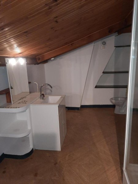 FLAYOSC - Place Serrailler - Appartement mansardé de type DEUX rénové d'une superficie habitable de 66.35m² et 76.10 au sol, loué avec CAVE - composé d'une entrée, un grand séjour ouvert sur cuisine aménagée et équipée d'une hotte et plaque 36.75m², une chambre avec rangement 17.98m², salle d'eau avec wc- chauffage collectif, cumulus.