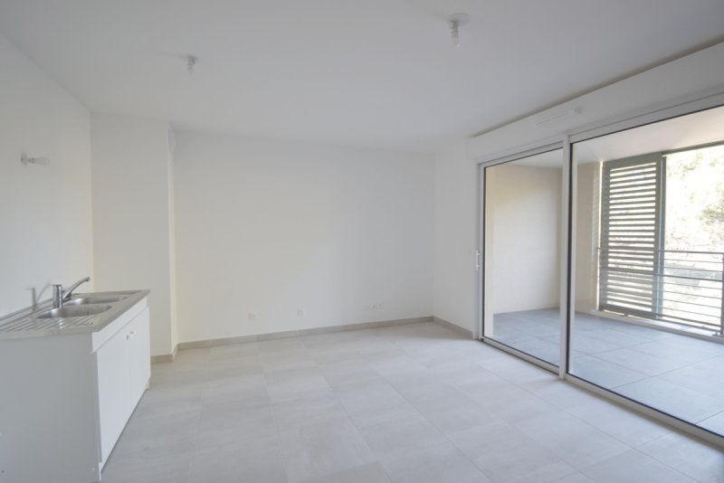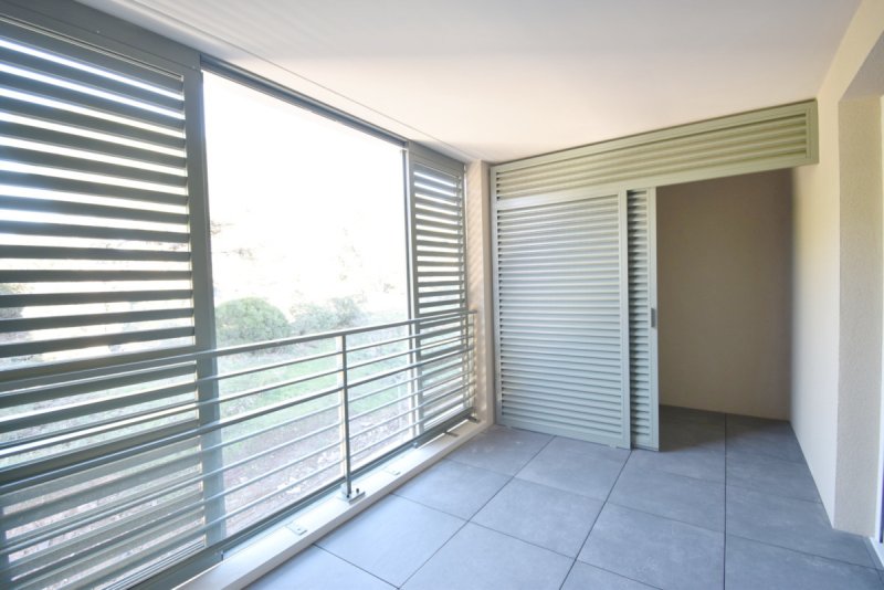 FREJUS Dans une résidence neuve proche autoroute Appartement T2 de 45,62m2 au 2ème étage avec ascenseur. Entrée ouverte avec placard, séjour, coin cuisine (plaque et hotte), loggia de 12m2 avec cellier, dégagement, chambre de près de 15m2 avec 2 placards, salle d'eau, wc séparé. Garage en sous sol 16m2