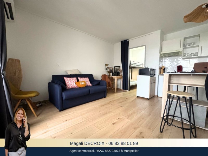 Situé rue Pierre Racine, au sein de la résidence L'Amiral II, ce studio meublé en excellent état, situé au 4? étage, saura vous séduire par son agencement fonctionnel et son atmosphère soignée. L'appartement se compose : d'un séjour lumineux avec lit convertible, d'une cabine équipée de deux lits superposés, d'un espace cuisine aménagé et équipé, ainsi que d'une salle d'eau avec WC. Entièrement meublé avec goût, ce studio est prêt à vivre et conviendra parfaitement à une personne seule ou un jeune couple, à la recherche d'un logement confortable et bien situé. Location meublée Bail d'1 an - Emplacement recherché à La Grande-Motte, à proximité des commodités et du bord de mer. - Coup de coeur possible, appartement rare dans cet état sur le secteur. Loyer HC 577,92 euros Loyer CC 650 euros Lien de candidature à me demander avant toute visite.