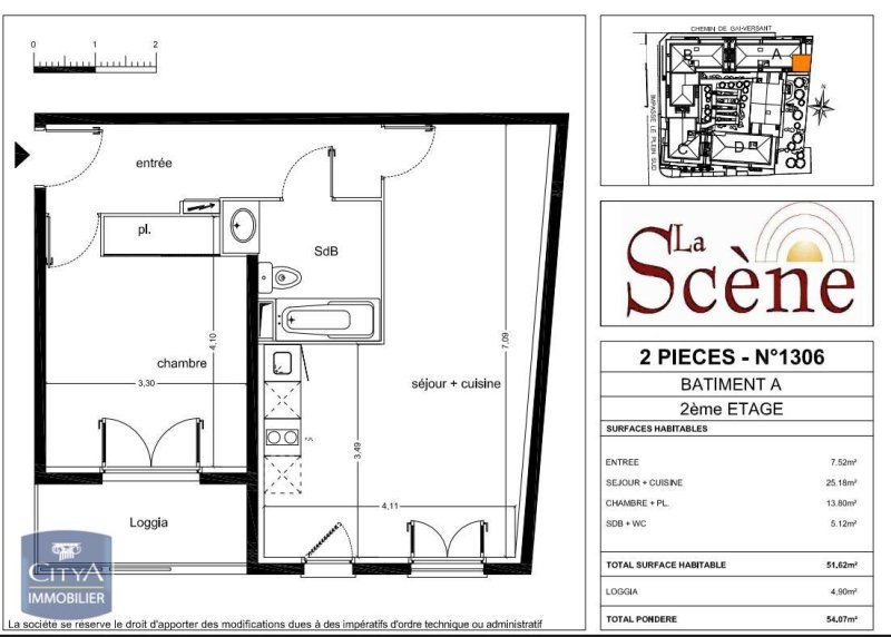 D'une superficie de 51 m², cet appartement se compose d'une entrée, d'un salon avec cuisine aménagée, une chambre et une salle de bains avec wc. La disposition des espaces favorise une circulation fluide et agréable, permettant de profiter pleinement de chaque mètre carré. S'ajoute une terrasse pour profiter de l'extérieur.