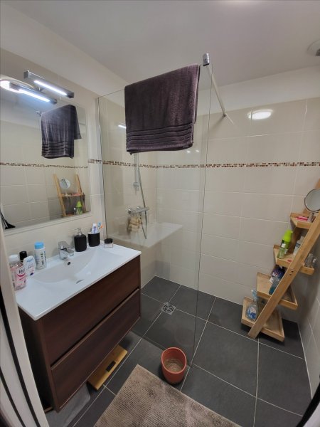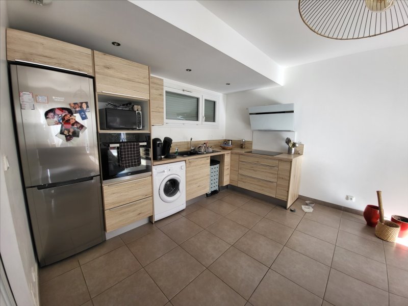 Comprenant: un hall d'entrée, un séjour avec coin cuisine aménagé donnant sur un terrasse 22m² et un jardin de 27.70m², une chambre avec placard, une salle d'eau avec douche à l'italienne et un wc.