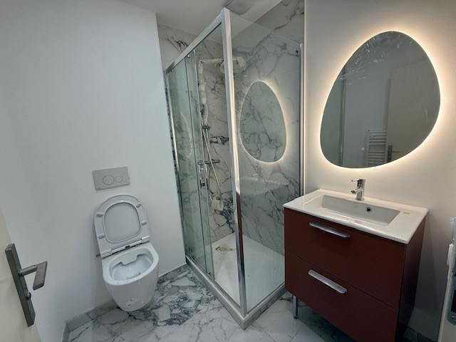Situé dans un petit immeuble de 2 étages au centre du village, cet appartement d'exception en rez-de-jardin offre des prestations rares et raffinées sur une surface de 130,09 m2. Dès l'entrée, le ton est donné : volumes généreux, finitions haut de gamme et ambiance élégante. La pièce de vie de près de 39 m2, baignée de lumière et entièrement climatisée, s'ouvre sur un jardin privatif offrant un véritable havre de paix. Elle comprend un espace salon chaleureux, un coin bureau et une cuisine américaine entièrement équipée avec des matériaux et électroménagers de haute qualité. L'espace nuit se compose d'une suite parentale avec double dressing, salle d'eau marbrée à double vasque et climatisation, 2 chambres avec placards et salle d'eau privative avec WC et d'un WC indépendant supplémentaire. Chaque détail a été pensé pour offrir confort, élégance et fonctionnalité : marbre dans les salles d'eau, climatisation intégrale, menuiseries haut de gamme, et prestations de très belle facture. Un garage de 25 m2 complète ce bien rare à la location. Adresse privilégiée, au calme et à deux pas des commodités, jardin privatif sans vis-à-vis, matériaux nobles et finitions d'exception. Disponible immédiatement.