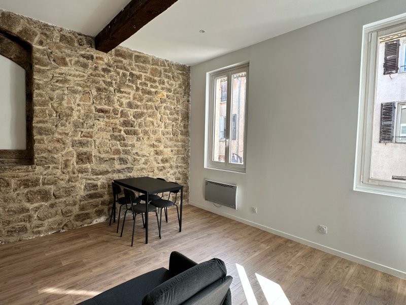 LE LUC Centre-ville Appartement studio meublé rénové avec charme Idéalement situé en plein coeur du centre-ville du Luc, à proximité immédiate des commerces et des transports, découvrez ce charmant appartement de type studio entièrement meublé, d'une superficie de 39 m2, rénové avec goût. Situé au 1er étage sur 2 d'un petit immeuble intimiste de seulement 3 logements, ce bien offre un cadre de vie agréable et calme. L'appartement se compose : d'un séjour lumineux au cachet authentique, sublimé par de magnifiques murs en pierre, d'une cuisine ouverte équipée (plaque de cuisson, four, réfrigérateur, hotte aspirante), d'un coin nuit avec verrière confortable avec lit double et dressing, d'une salle d'eau moderne avec grand bac, rangements et sèche-serviettes. Conditions locatives : Loyer : 680 EUR / mois charges comprises (incluant provisions pour eau froide et taxe d'enlèvement des ordures ménagères) Dépôt de garantie : 1 200 EUR Honoraires locataire : 429 EUR TTC (état des lieux inclus) Bien soumis à une assurance Garantie Loyers Impayés (GLI) revenus minimum requis : 1 940 EUR nets mensuels. ou étudiant avec garants. Pour toute information complémentaire ou pour organiser une visite, merci de contacter Quadrimmo au 04 94 21 03 10. Les informations sur les risques auxquels ce bien est exposé sont disponibles sur le site www.georisques.gouv.fr.