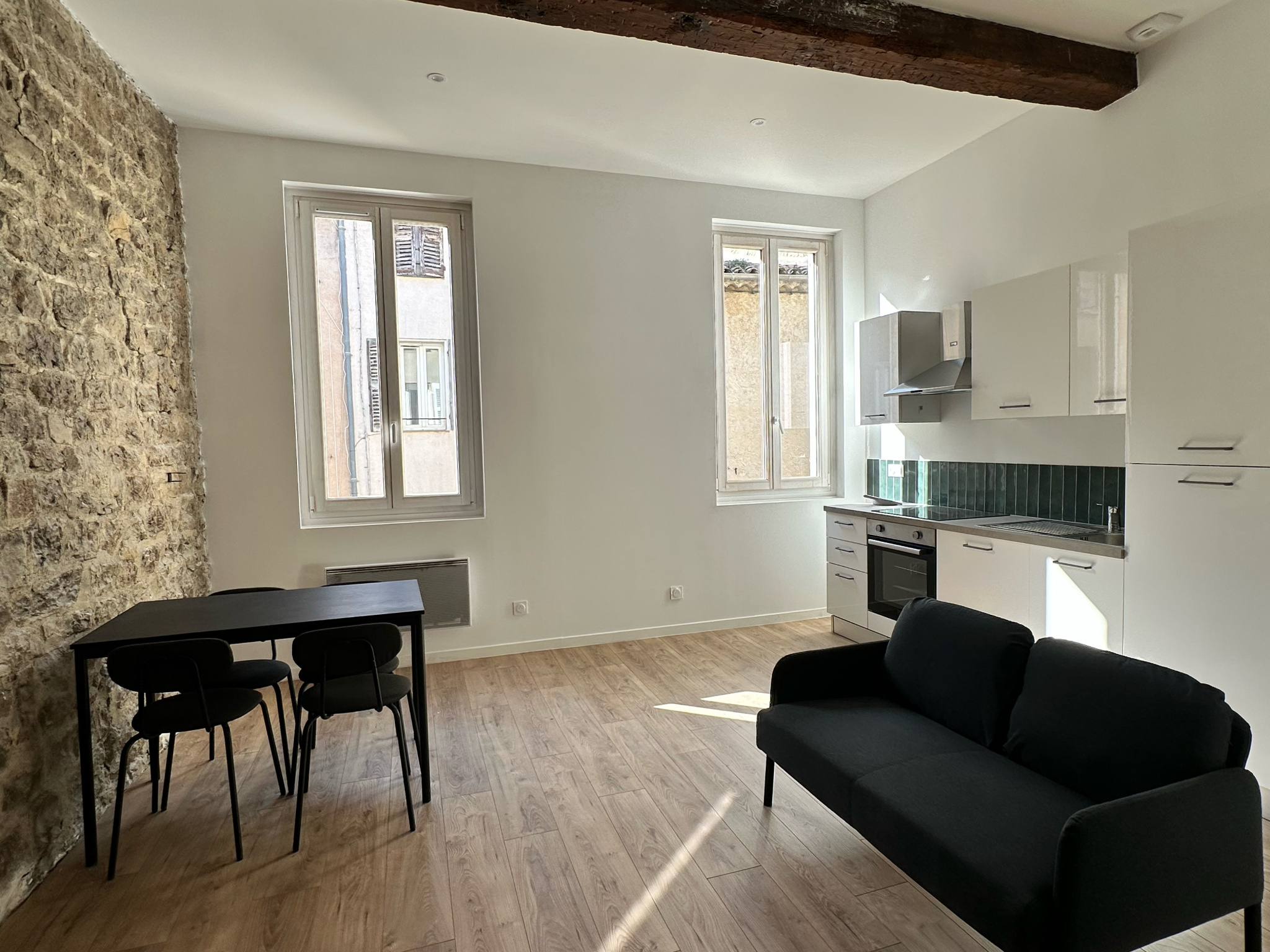 Un hall d'entrée, une cuisine aménagée indépendante, une buanderie, un séjour/salle à manger, une chambre
