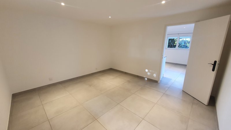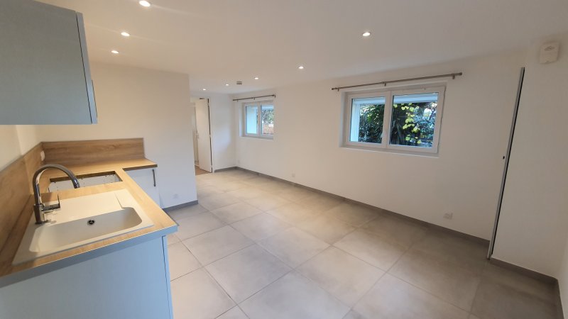 Quartier Pierreplane, Bas de villa de Type 2 de 40m2 entièrement rénové (carrelage, électricité, meubles cuisine, salle d'eau, peintures), comprenant une entrée sur le séjour avec espace cuisine aménagée, une salle d'eau avec wc, une chambre de 15m2. Jardin privatif de 90m2 environ avec un abri. Climatisation réversible. Stationnement aisé dans l'impasse. Disponible de suite. VISITE VIRTUELLE : https://www.youtube.com/watch?v=iW8NTHaRMRc