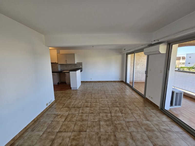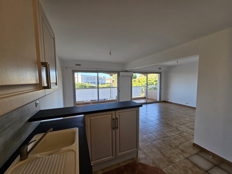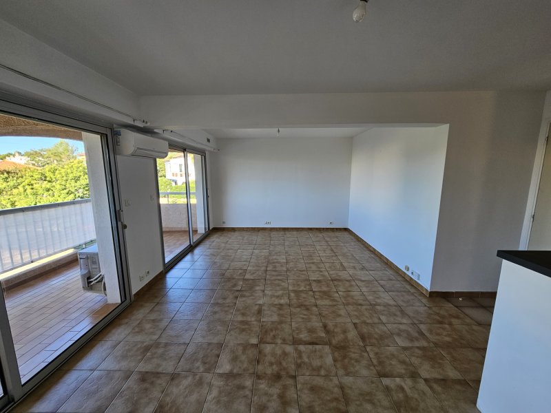 A 800M du Centre-Ville - Dans une petite copropriété de 2 étages, nous vous proposons cet appartement de Type 3 d'une superficie 64m2 au 1er étage. Il se compose : d'une entrée, d'une vaste pièce à vivre avec cuisine ouverte d'environ 34m2, le tout donnant sur une agréable terrasse de 13m2. Côté nuit, vous trouverez deux chambres dont une avec de nombreux rangements, une salle d'eau, un WC séparé. Le séjour est équipé d'une climatisation réversible pour un confort optimal toute l'année. Place de parking privative. Disponible de suite.