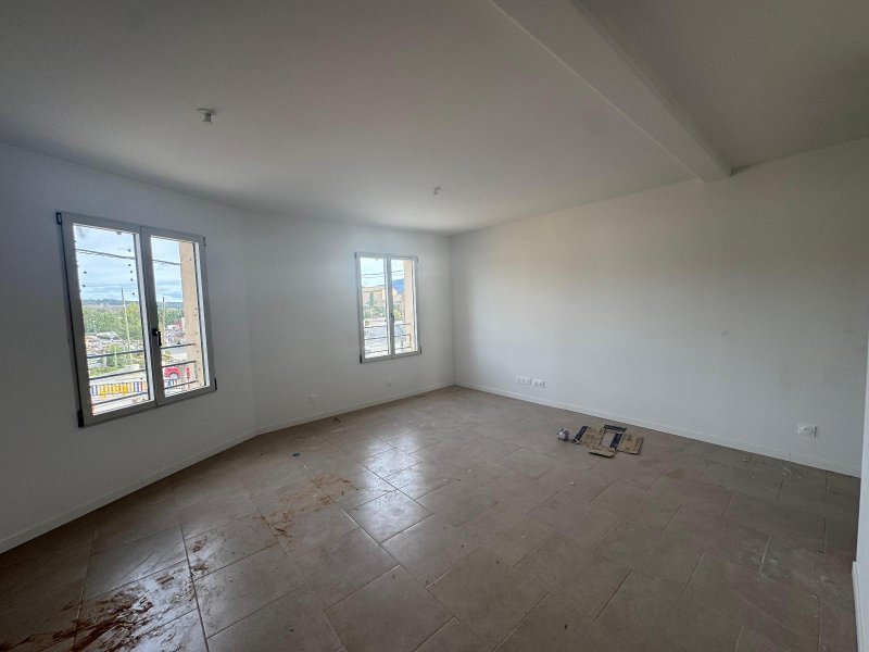 Pourrieres -Appartement type 2 en rdc avec parking - L'Agence REX vous propose à la location un appartement de type 2 de 45m² au rez-de-chaussée composé d'une cuisine aménagée et équipée d'une hotte ouverte sur le séjour, une chambre et une salle d'eau avec WC. Ce bien est disponible début mars sous condition de ressources