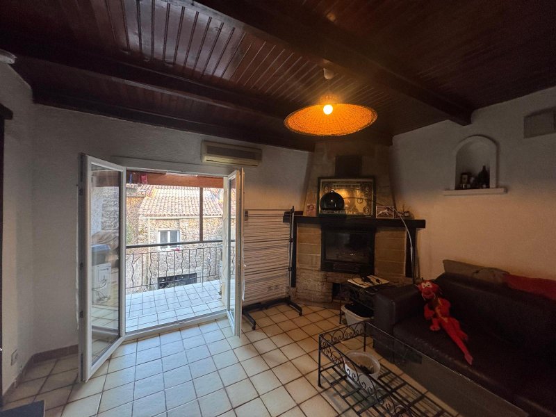 Rougiers- Appartement de type T1 - L'Agence Rex vous propose à la location un appartement de type T1 au centre du village au second étage principalement composé d'un salon avec cheminée et climatisation, un coin chambre, des toilettes, une salle d'eau et un coin cuisine aménagée et équipée d'un four, une plaque et une machine à laver
