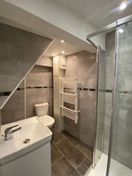 À louer : Charmant appartement de 2 pièces situé au rez-de-chaussée d'un immeuble en pierre construit en 1948, offrant un grand standing. D'une surface de 38 m², cet appartement comprend une chambre, une salle d'eau et un WC. La cuisine est ouverte et équipée, idéale pour les amateurs de cuisine. Le chauffage est électrique et l'eau chaude est fournie par un ballon électrique. Vous bénéficierez également d'une cave pour un espace de rangement supplémentaire.