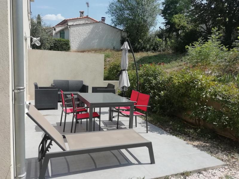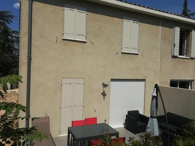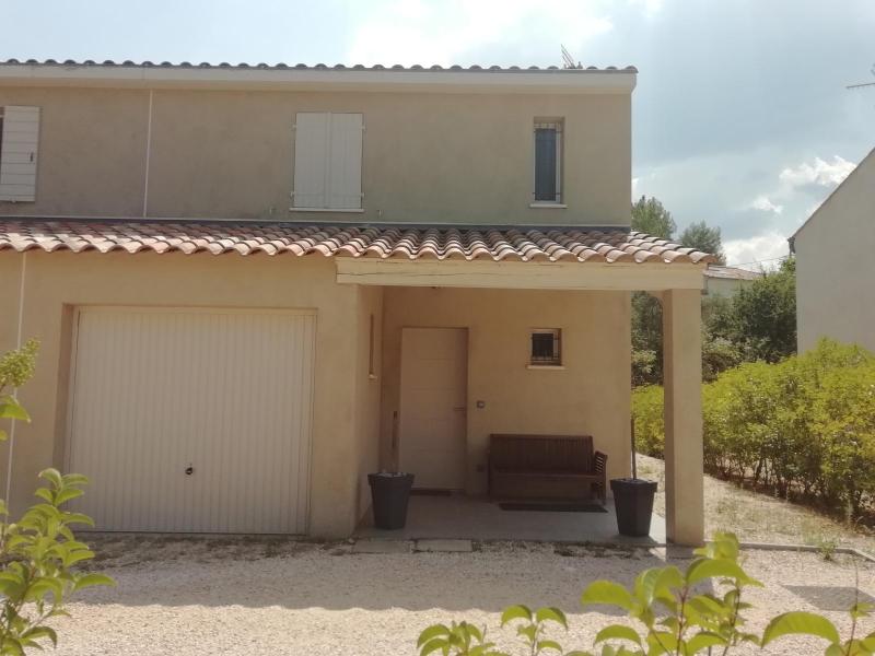 SAINT MAXIMIN - Maison de type 4 avec garage et terrasse - L'agence Rex vous propose à la location une maison mitoyenne de type 4 avec garage et terrasse principalement composée en RDC d'une entrée, toilettes avec lave mains, une cuisine américaine équipée ouverte sur séjour avec placard donnant accès à une terrasse et au 1 er étage 3 chambres avec placards, une salle de bains et des toilettes. Extérieur non clôturé.
