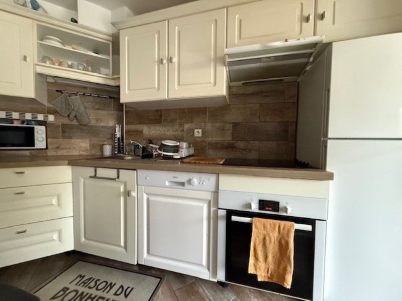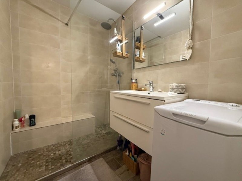 Il se compose d'une entrée, de deux chambres, dont une avec loggia donnant sur le jardin, d'une salle d'eau, d'un WC indépendant, d'une cuisine aménagée et équipée ainsi que d'un séjour ouvrant sur une grande terrasse au calme avec un jardin de 110m².