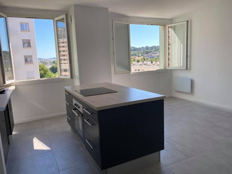 LOCATION - TOULON AGUILLON - BEAU T2 RENOVE AVEC CAVE : Situé à Toulon, Quartier Aguillon, appartement T2 lumineux et moderne de de 41 m2 habitables, entièrement refait à neuf (2020) avec des matériaux aux goûts du jour. L'appartement se compose d'une entrée, d'une cuisine équipée ouverte sur le séjour avec îlot central, d'une salle d'eau avec douche, sèche serviette et wc, d'une chambre avec un balcon. Résidence calme et sécurisée - 5ème étage avec ascenseur - Interphone - Cave privative - Double vitrage - Chauffage électrique - Climatisation. Proximités : Mourillon o Plage o Universités o Centre Mayol Transports o Commerces o Toutes commodités Disponible à partir du 30 octobre. Loyer : 700 EUR charges comprises. Charges : 25 EUR comprenant l'entretien des parties communes. Dépôt de garantie : 675 EUR. Honoraires d'agence : 533 EUR dont 123 EUR pour l'état des lieux.