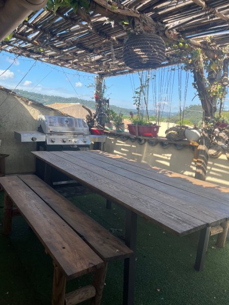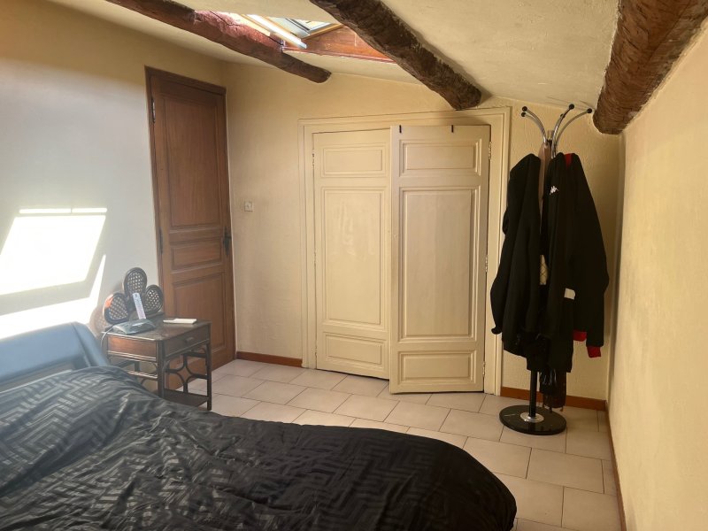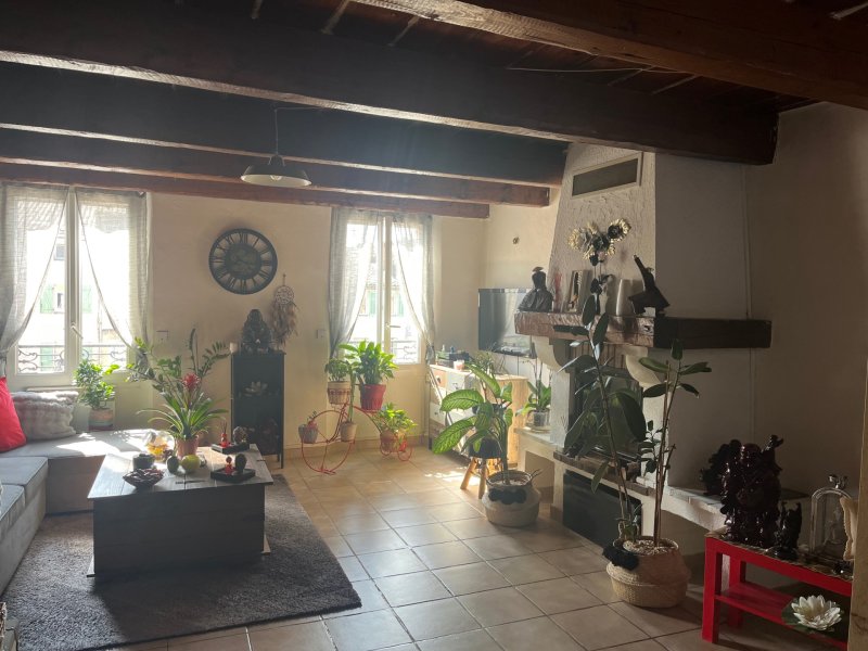 Vidauban: Appartement situé au 2 ème et dernier étage en plein coeur du centre ville. L'appartement traversant est composé d'un séjour avec une cheminée, une cuisine avec un grand placard et une salle de bain. A l'étage vous trouverez deux chambres dont une avec un grand dressing et un WC. Une terrasse d'environ 12 M2 sans vis à vis. Vous disposerez également d'un garage et d'une cave. Grand parking à proximité.