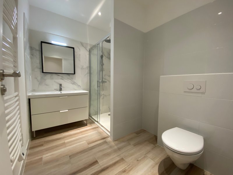 Dans un immeuble rénové et sécurisé du centre-ville de Carcès, proche des parkings gratuit, au deuxième étage, un appartement de 68m2 type T3 composé d'un grand séjour/ cuisine équipée (four/ plaque et hotte) de 25m2 avec une buanderie, deux chambres au calme et une salle d'eau/ WC. Le logement dispose d'une cave privée.