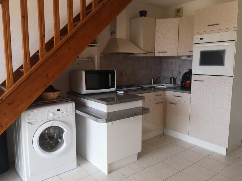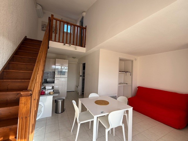 CARQUEIRANNE, Chemin du Petit Lac. Appartement de type 2 MEUBLE en duplex au 2ème étage SANS ASCENSEUR de 38.76 m2, comprenant : entrée, cellier, wc indépendant, salle d'eau, salon avec coin cuisine aménagé et équipé (four, four micro-ondes, lave-linge, plaques de cuisson induction, hotte etc...), terrasse d'environ 7.60 m2 avec vue mer exposée sud/ouest. A l'étage : palier avec coin bureau, chambre mansardée avec placards. LIBRE LE 17/11/2025. LOYER : 759.58 euros (dont 59.00 euros de provisions sur charges comprenant : TEOM, charges de copropriété). DÉPOT DE GARANTIE : 700.58 euros. HONORAIRES : 503.00 euros (dont 116 euros pour la réalisation de l'état des lieux entrant). AGENCE LOGIS SERVICE HYERES 04.94.12.36.10