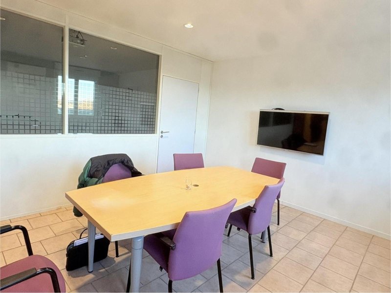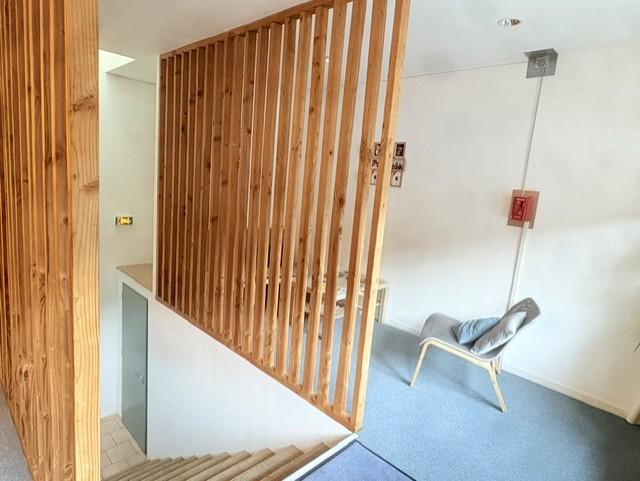 Local fonctionnel de 168,29 m² réparti sur trois niveaux idéal pour bureaux cabinet professions libérales ou activité de services au rez de chaussée une entrée et un espace de rangement sous escalier au premier étage un espace accueil un bureau une pièce archives et un WC au deuxième étage un palier et une grande salle de réunion et un garage de 33,5m² local bien agencé avec des espaces distincts pour accueillir la clientèle travailler et organiser des réunions