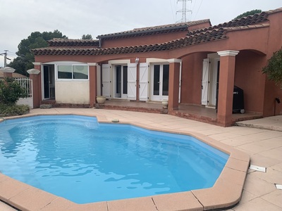 1er étage d'une villa dans une impasse au calme comprenant une entrée, un grand séjour donnant sur une terrasse, une cuisine indépendante équipée et aménagée, deux chambres, une salle d'eau, WC.