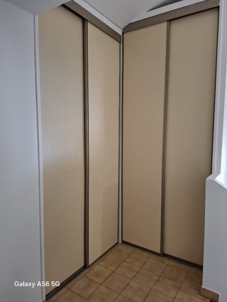 A l'étage une chambre une salle de bain avec wc deux grands placards.