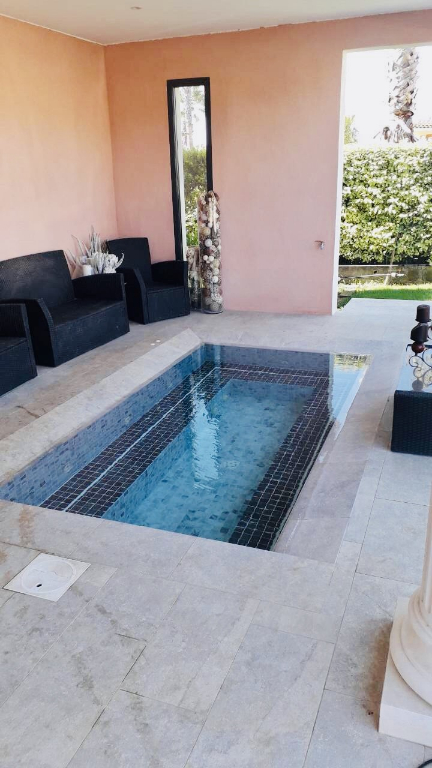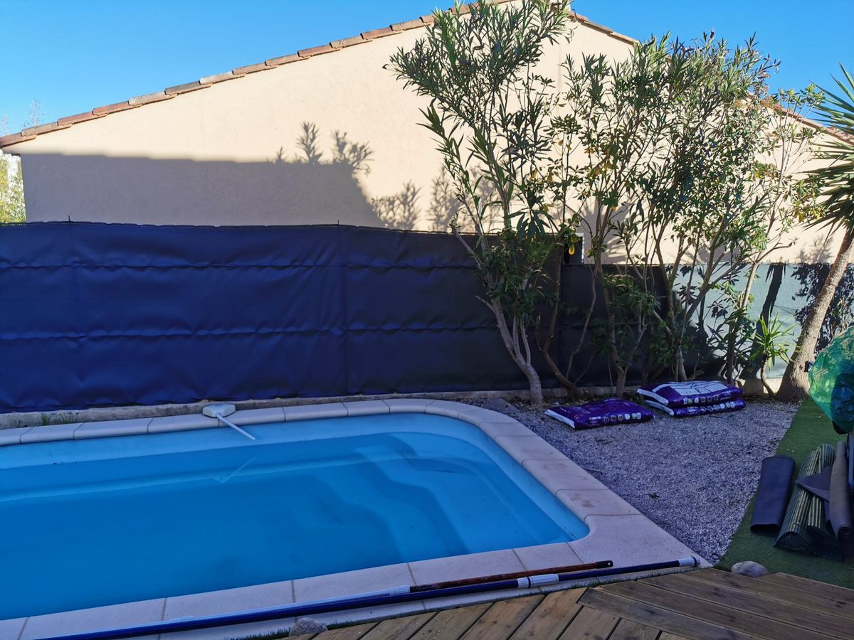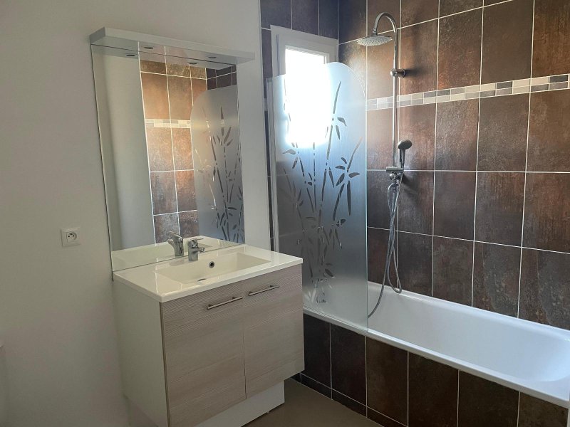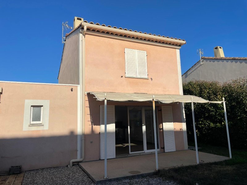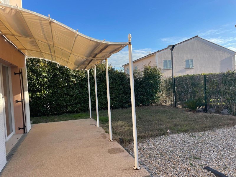 Une villa de type T3 dans une copropriété sécurisée comprenant un hall d'entrée, un séjour avec une cuisine équipée ( four, plaque de cuisson, hotte) une terrasse, un garage, un jardin clos