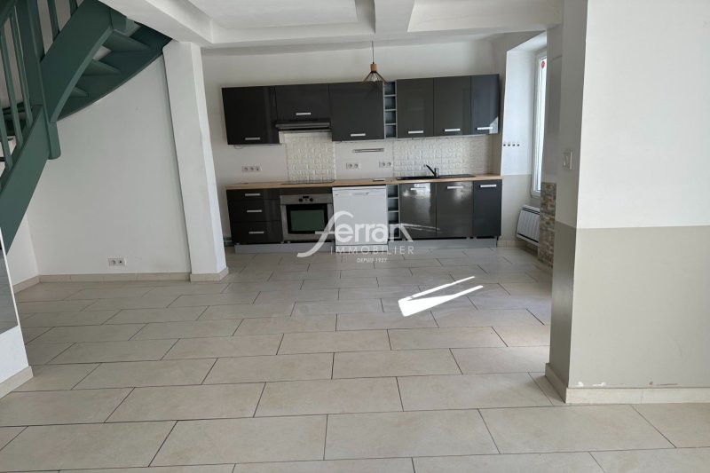 Lorgues, au centre du village, une maison de ville de 90m² environ comprenant au rez-de-chaussée une cuisine aménagée ouverte sur le séjour avec climatisation, un cellier, au 1er étage une chambre avec dressing, une salle de bains + douche et wc, au 2ème étage un coin bureau, une grande chambre et une plus petite. Cour privative sans vis à vis et abri voiture. Dépôt de garantie : 1250¤ - Honoraires charge locataire : 525¤ + état des lieux : 225¤
