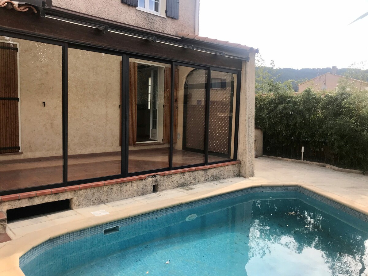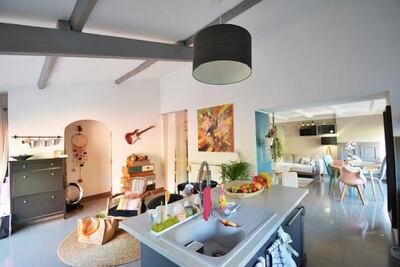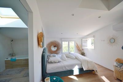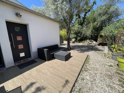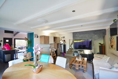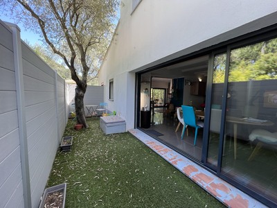 Dans quartier résidentiel, proche grands axes, maison mitoyenne de 131m² en triplex. Elle se compose en rdc d'un séjour, d'une cuisine ouverte entièrement équipée avec coin cellier et d'un wc indépendant, en étage d'une chambre de 25m² , d'une salle d''eau attenante avec wc , un demi étage supérieur dessert deux chambres dont une suite parentale de 27m² avec salle de bain et douche. terrasses, jardin, places de parking. Chauffage central par pompe à chaleur, climatisations. Disponible immédiatement - Loyer 1500 € + forfait charges 250 € (consommation chauffage, entretien pompe à chaleur, climatisations, espaces verts, OM). DG 1500 € HA 900 € TTC dont edl 270 € TTC.