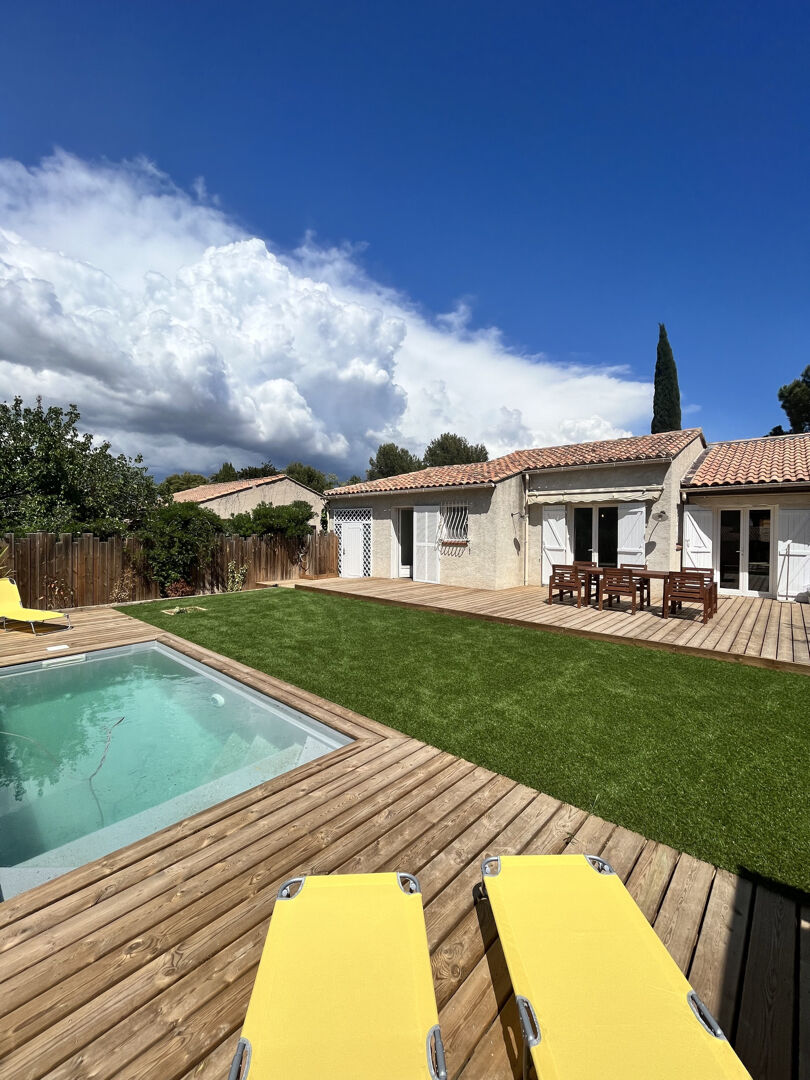 Est également présent dans le jardin un grand cabanon pouvant servir de cuisine d'été ou de rangement. Les terrasses présentes des deux côtés vous permettront également de manger en extérieur aux beaux jours.
