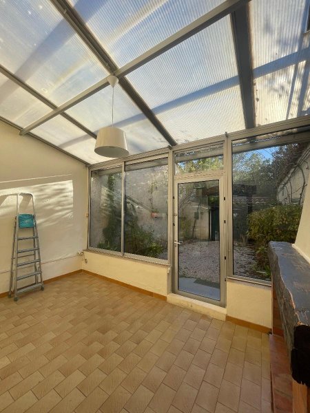 Saint-Maximin - Maison de village de type 3 avec veranda, cour et cave - L'Agence Rex vous propose à la location une maison de village de type 3 en centre ville principalement composée de : une entrée, un salon /salle à manger, une cuisine aménagée avec cellier, des toilettes, une salle d'eau , une belle véranda avec cheminée donnant accès à une cour et à l'étage 2 chambres avec placards, une salle de bains et des toilettes.
