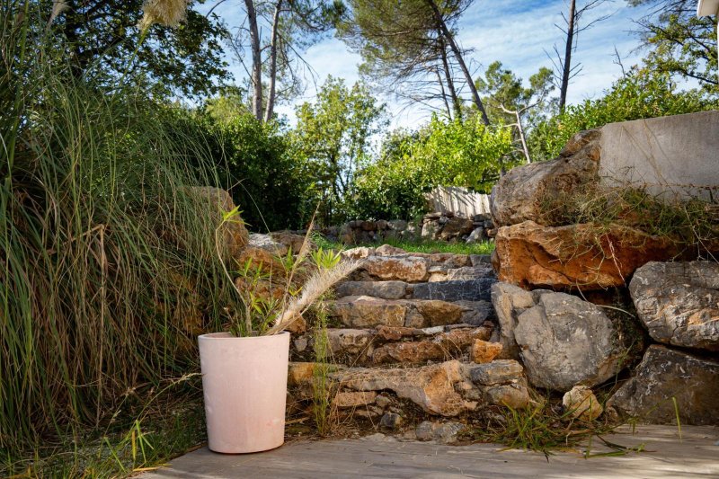 Saint Maximin- Maison de type 4 avec garage et jardin - L'agence rex vous propose à la location une maison de type 4 de 120m² env. avec jardin et un garage de 28m² qui est principalement composée en rez-de-chaussée d'une cuisine ouverte sur séjour avec terrasse, d'une suite parentale avec salle de bain et dressing donnant sur le jardin et d'un WC. À l'étage, deux chambres avec une salle de bain attenante et placard et un WC.
