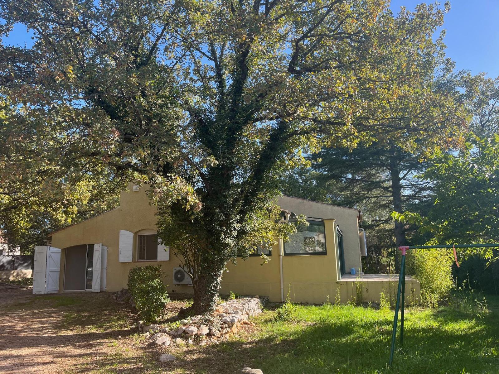 Saint - Zacharie - Maison de type 4 avec atelier et jardin - L'Agence Rex vous propose à la location une maison de type 4 de 90m env. sur 400 m² de jardin env. principalement composée d'une entrée, une cuisine aménagée, un salon/salle à manger avec cheminée, un dégagement avec placard, un toilette avec lave mains, une salle de bains, 3 chambres dont une avec placard et un atelier attenant a la maison