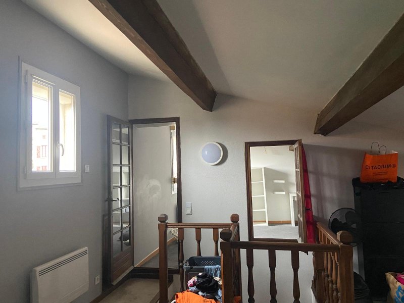 Au 1er étage : Un palier pouvant servir de bureau, une grande chambre mansardée, une salle d'eau avec toilette.