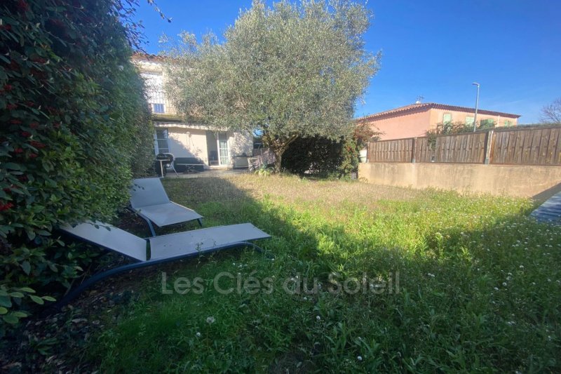 Loue Brignoles Maison mitoyenne qui se composant au rez-de-chaussée : d'une cuisine fermée, un salon séjour donnant sur une terrasse avec jardin d'environ 280 M², wc indépendant et un garage attenant.