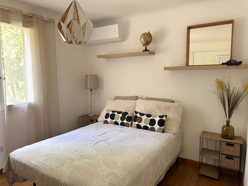Meublée (lit, placard/penderie, télévision avec accès internet, climatisation réversible).