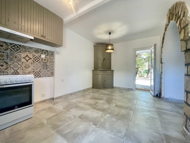 Situé en pleine campagne, à seulement 5 minutes en voiture du centre de Carcès et 25 minutes de Brignoles, ce bastidon d'environ 62 m2 se niche dans le cadre paisible du Domaine Saint-Jean. Il se compose au rez-de-chaussée d'un séjour avec cuisine et salle à manger ouverts sur une terrasse offrant une belle vue dégagée. À l'étage, vous trouverez deux chambres ainsi qu'une salle d'eau avec WC séparé. Le bien dispose d'un terrain arboré d'environ 1000 m2, planté d'oliviers, avec deux terrasses ombragées pour profiter de l'extérieur. Un garage de 25 m2 complète l'ensemble. Équipements : chaudière au gaz, forage, système d'alarme Verisure.