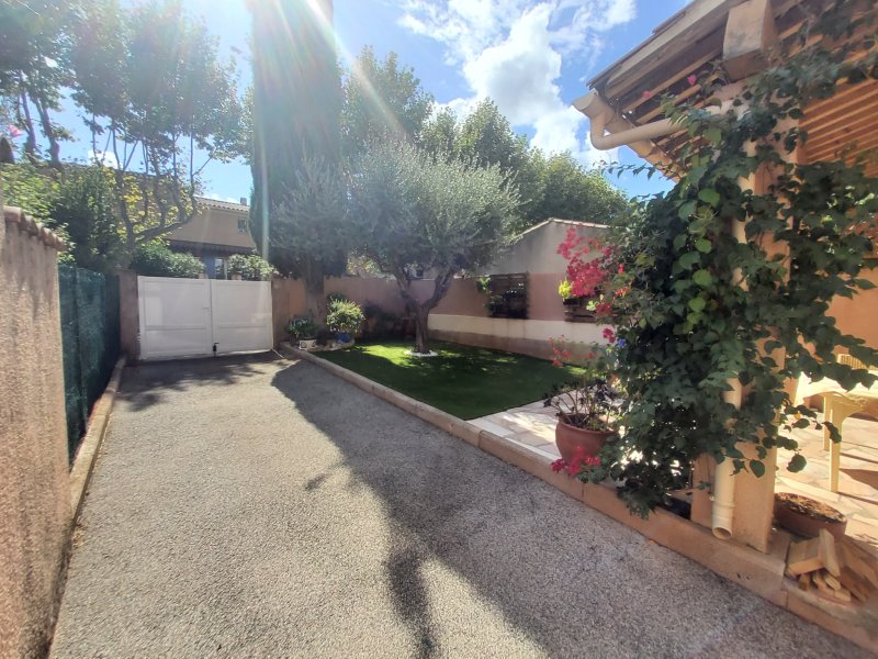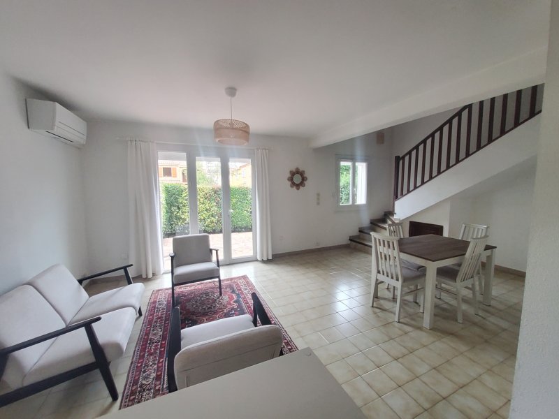 Cuers: jolie villa de type 4 meublée. D'une superficie de 82 m2, elle se compose, en rez de chaussée, d 'une entrée avec placard, un séjour donnant sur une cour à l 'abri des regards, une cuisine séparée aménagée et équipée, un wc. A l 'étage: trois chambres, une salle de bains avec douche baignoire, un wc. Vous profiterez également d'un jardinet arboré avec terrasse, et un emplacement de stationnement sur le terrain et d un garage. Proche des écoles et crèches. Disponible à partir du 16 mars 2026.