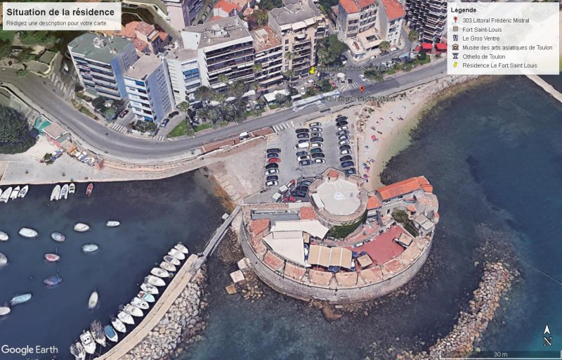 Quartier du Mourillon, place de parking privative en RDC couverte dans résidence sécurisée. Située immeuble le Fort Saint Louis, 303 Littoral Fédéric Mistral, en front de mer. Disponible de suite.
