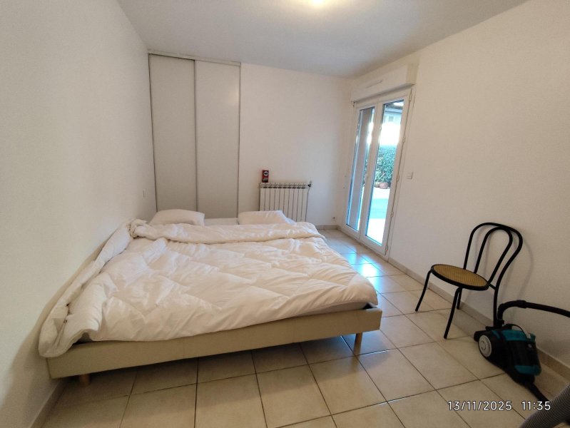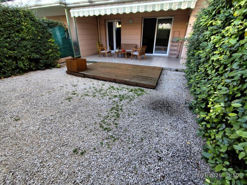 L'espace se compose d'une cuisine et d'un séjour lumineux ouvrant sur une terrasse prolongée par un jardinet privé, idéal pour profiter des beaux jours.
