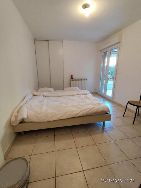 La chambre offre un beau volume ouvre elle aussi sur la terrasse, une salle d'eau et un wc indépendant