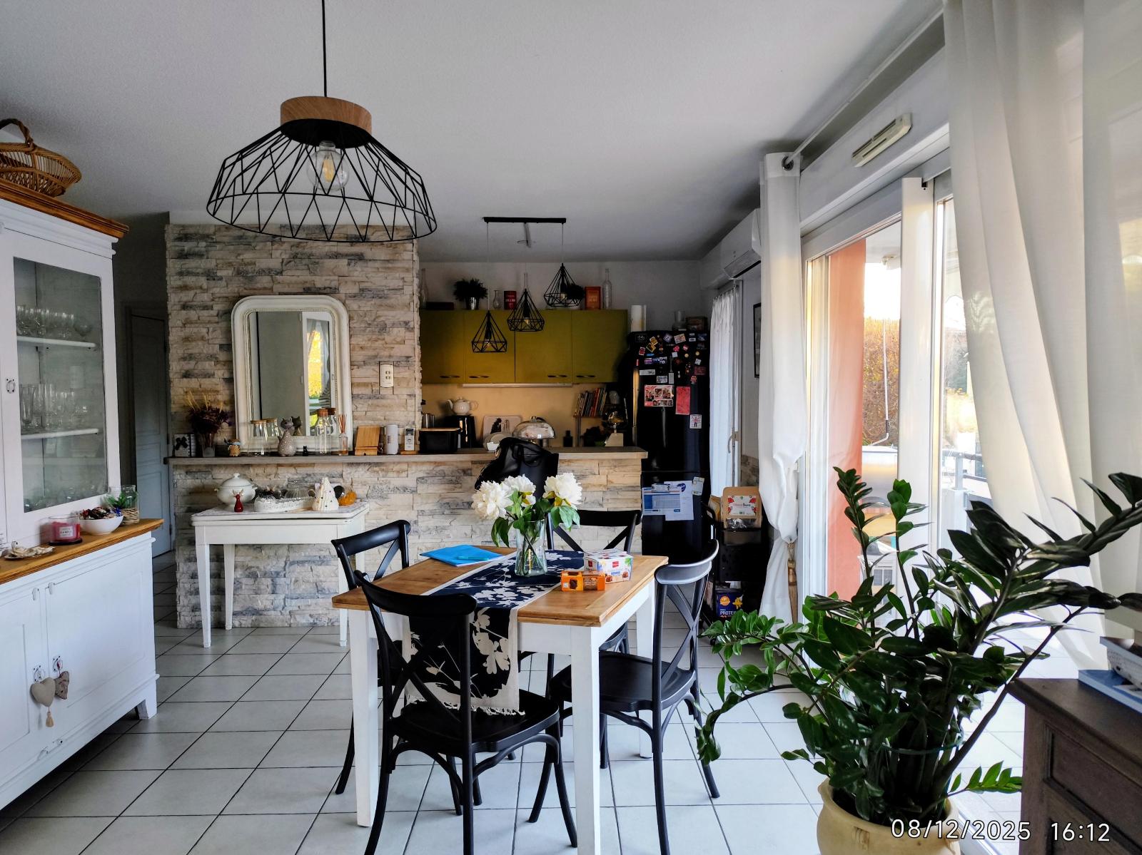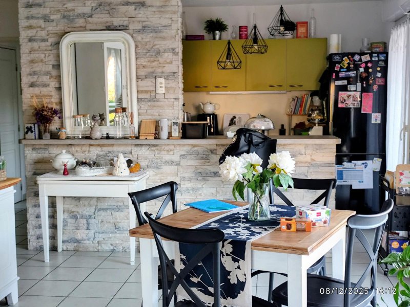 L'entrée s'ouvre sur un hall, puis sur une spacieuse pièce de vie baignée de lumière, composée d'un séjour convivial avec une cuisine ouverte idéal pour recevoir. le séjour possède une climatisation réversible assurant un confort optimal en toute saison.