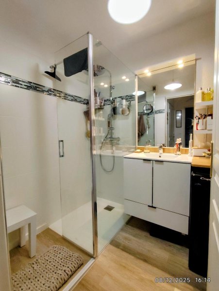 La partie nuit comprend une belle chambre, au calme, ainsi qu'une salle d'eau entièrement rénovée avec des finitions de qualité. Les wc sont indépendants, apportant un vrai plus au quotidien. De nombreux placards de rangement viennent compléter l'ensemble.