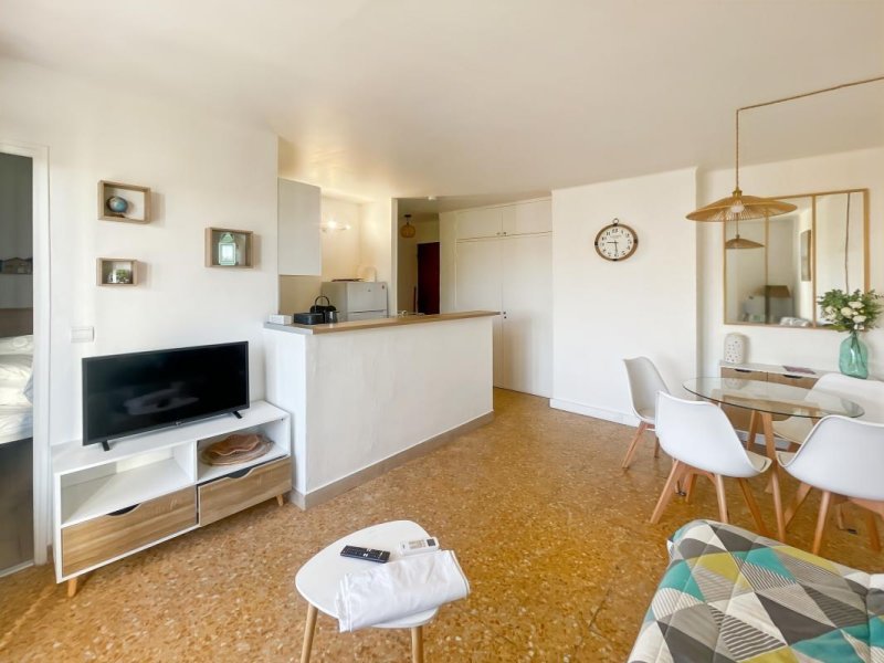Il se compose d'une entrée avec placard, d'une salle d'eau avec WC, d'une cuisine aménagée et équipée ouverte sur un séjour lumineux et climatisé, ainsi que d'un coin nuit disposant d'une fenêtre.