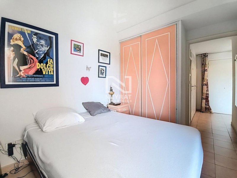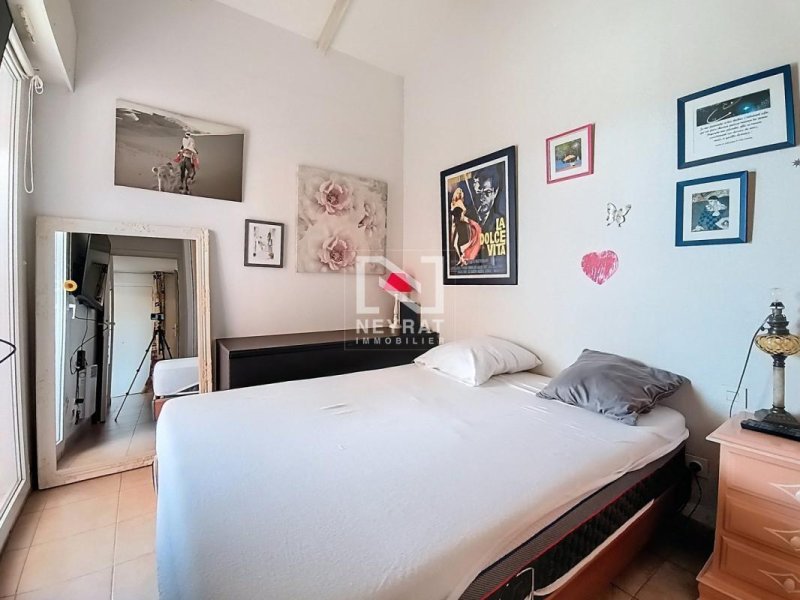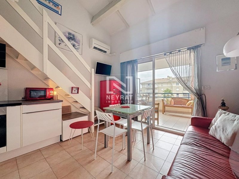 Dans résidence sécurisée , au 4ième et dernier étage avec ascenseur, appartement de type duplex, à l''agencement original, au calme avec vue dégagée, Type 2/3 comprenant, entrée avec placard, couloir avec salle de bain, wc séparé, chambre avec placard et plafond type cathédrale , cuisine toute équipée et aménagée ouverte sur séjour donnant sur terrasse de 9.90m², carrelée, en étage mezzanine de 14,50m² au sol dont 8.57 en carrez, qui offre une possibilité d'une deuxième chambre, le tout en toit type cathédrale donnant une agréable sensation de volume. (Possibilité de Garage fermé en sous sol de 15,59m²), Belle vue sur l'Esterel.