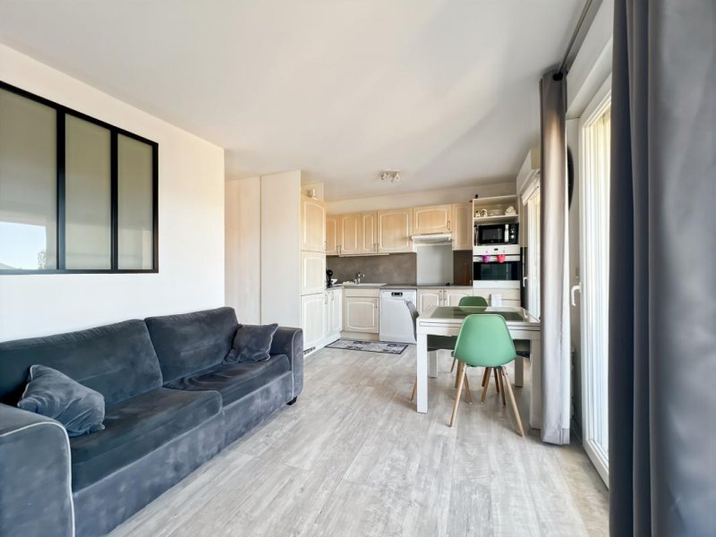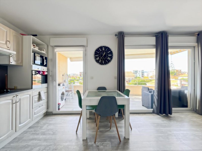 Résidence récente au calme avec piscine, lumineux 2 pièces de 48m² , comprenant, entrée, placards, wc, cuisine équipée ouverte sur séjour donnant sur magnifique terrasse de 17m² plein sud, chambre avec placards, salle d'eau et un coin nuit avec placard.