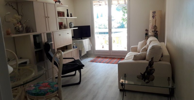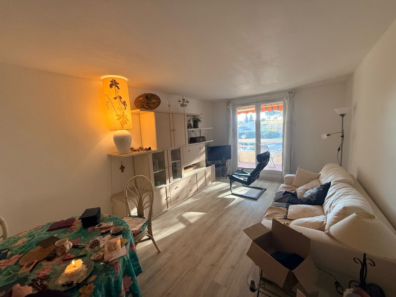 VIAGER LIBRE dans résidence sécurisée avec piscine, appartement 2 pièces d'environ 40m2 composé d'une entrée avec 2 placards, une cuisine équipée et une chambre sur loggia est, un séjour sur terrasse sud, une chambre avec placard, une salle de bains, un WC indépendant. Cave. Jouissance d'un parking privatif. Bouquet 48000 EUR. Rente mensuelle: 734,95EUR. 1 tête : femme 72 ans.