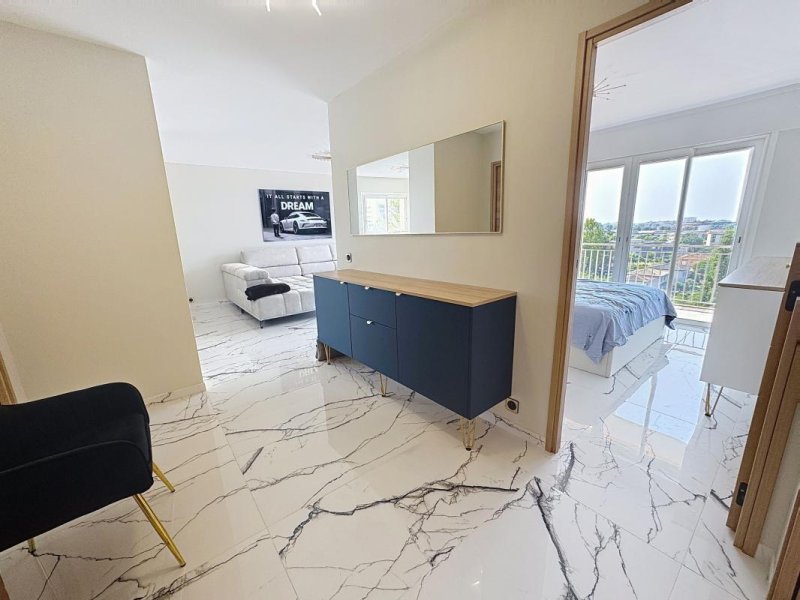 Entre plage et centre ville, en proximité des écoles et commerces, magnifique 3 pièces en dernier étage avec ascenseur entièrement rénové avec des matériaux de grande qualité, composé : d'une entrée spacieuse, d'un séjour avec un accès ouvert à la belle cuisine aménagée et équipée, 2 chambres dont 1 avec placards, salle d'eau douche italienne, wc suspendu. Climatisation réversible dans toutes les pièces de vie.